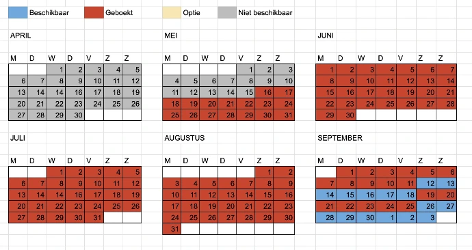 Zodra je je aanvraag hebt verstuurd zullen wij deze zo snel mogelijk beantwoorden. We vragen je dan om een aanbetaling van 25% als reserveringsbevestiging over te maken (binnen twee weken).