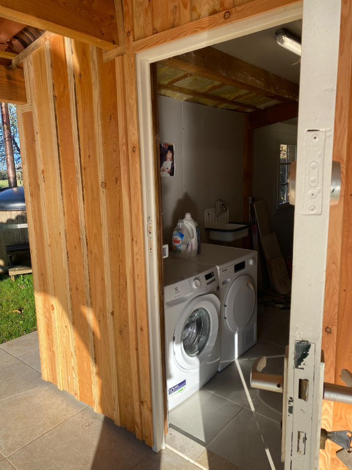 In de berging staan de wasmachine en de droger.